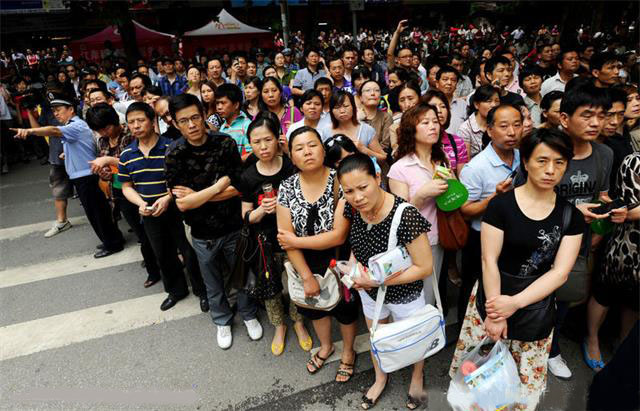 更令人淚目的是考場(chǎng)外陪考的家長(zhǎng),