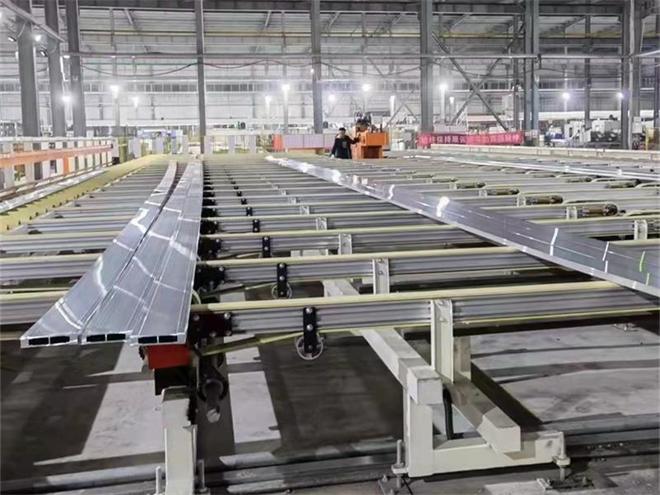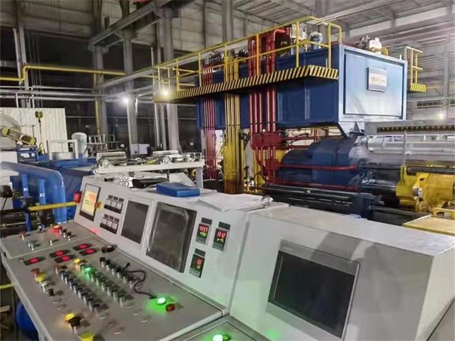 是在2021年10月,定制的。12月初,該鋁型材擠壓生產線開始安裝調試工作,在線淬火系統(tǒng),全自動冷床、無人、單人自動調直機、全伺服三頭四軌牽引機,鋁棒熱鋸切爐,紅外線模具加溫爐,15米18框時效爐安裝收尾,預計將在2022年一月初投產,今天終于傳來好消息,4000T蔚來汽車鋁型材擠壓生產線安裝結束,順利出料!