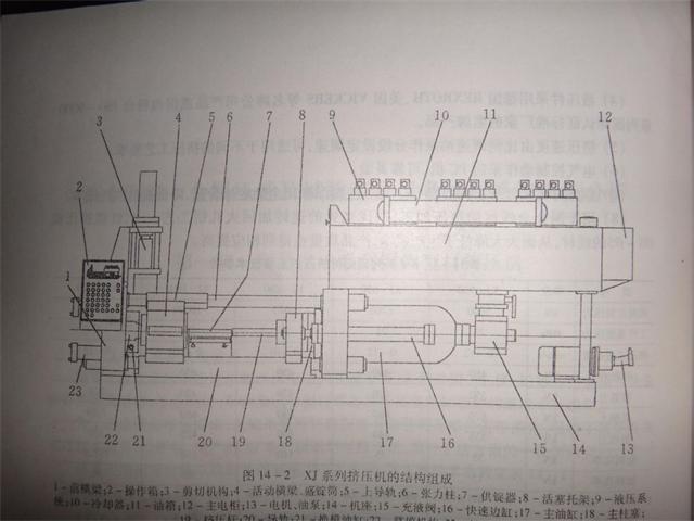 XJ系列銅鋁型材擠壓機的基本結(jié)構(gòu)如圖14-2所示。